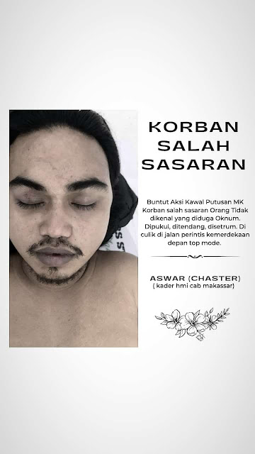 Makassar, 24 Agustus 2024 – Dalam suasana panas pasca-putusan Mahkamah Konstitusi (MK) yang memicu aksi massa di berbagai daerah, insiden memilukan terjadi di Makassar. Aswar, seorang kader Himpunan Mahasiswa Islam (HMI) Cabang Makassar, menjadi korban kekerasan oleh sekelompok orang tidak dikenal. Kejadian ini menyisakan luka fisik dan trauma mendalam, tak hanya bagi korban, tapi juga bagi teman-teman seperjuangannya.